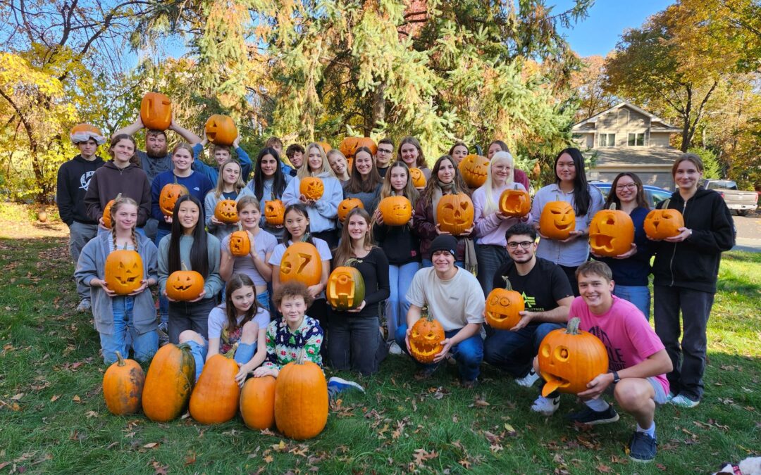 Die Austauschgruppe in Hudson, Wisconsin bei den letzten Vorbereitungen für Halloween: pumpkin carving