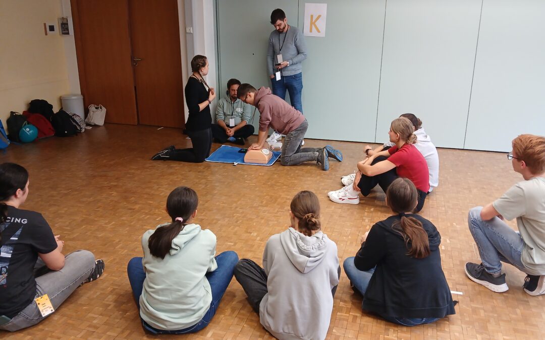 Am 07.10.2024 bildeten sich unsere Schulsanitäterinnen und Schulsanitäter im hessischen Langen über Wiederbelebungsmaßnahmen weiter. Neben Vorträgen von Ärzten und Rettungskräften standen auch praktische Übungen auf dem Programm – hier die Reanimation an der Übungspuppe.