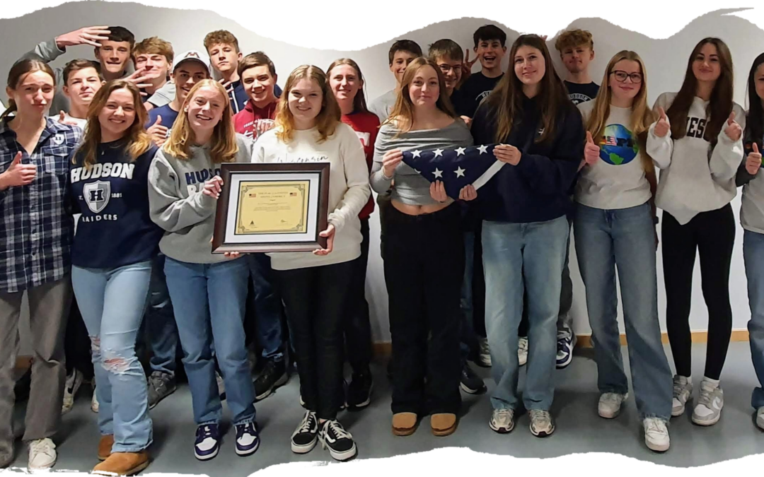 Unsere Austauschgruppe ist zurück aus Hudson, Wisconsin, USA und hat die Flagge dabei, die zu Ehren unseres Austauschprogramms über dem Capitol in Washington D.C. wehte.