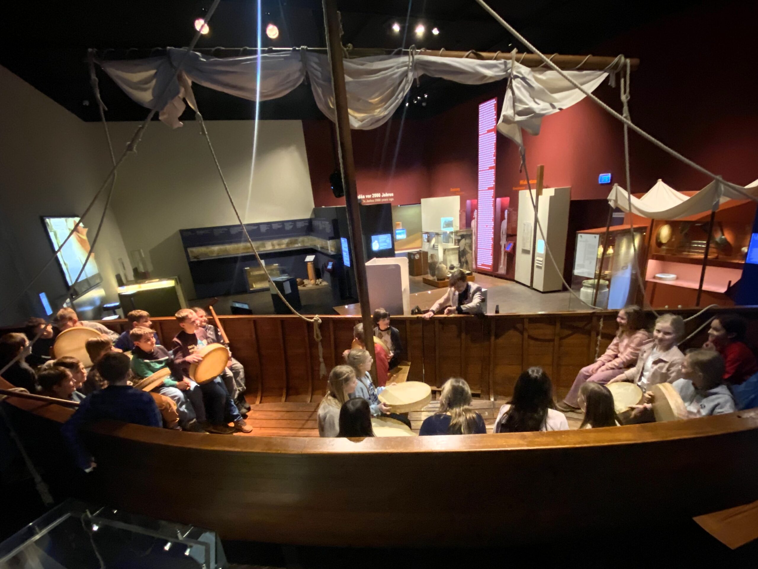 Beim Besuch im Erlebnismuseum BiMU in Frankfurt erlebten unsere 5. Klassen in einem originalen Fischerboot hautnah, wie der Sturm auf dem See Genezareth originalgetreu nachgespielt wurde.