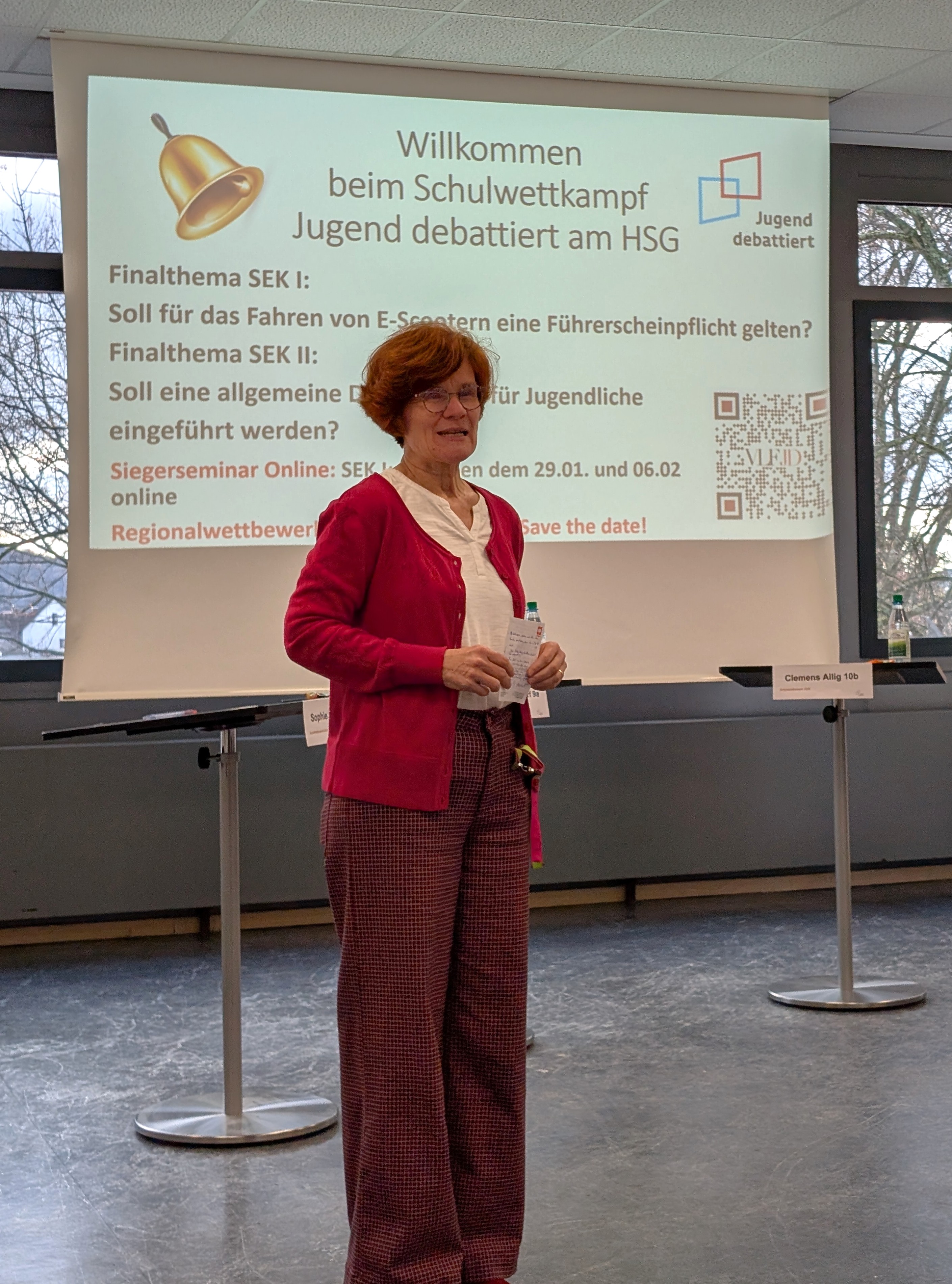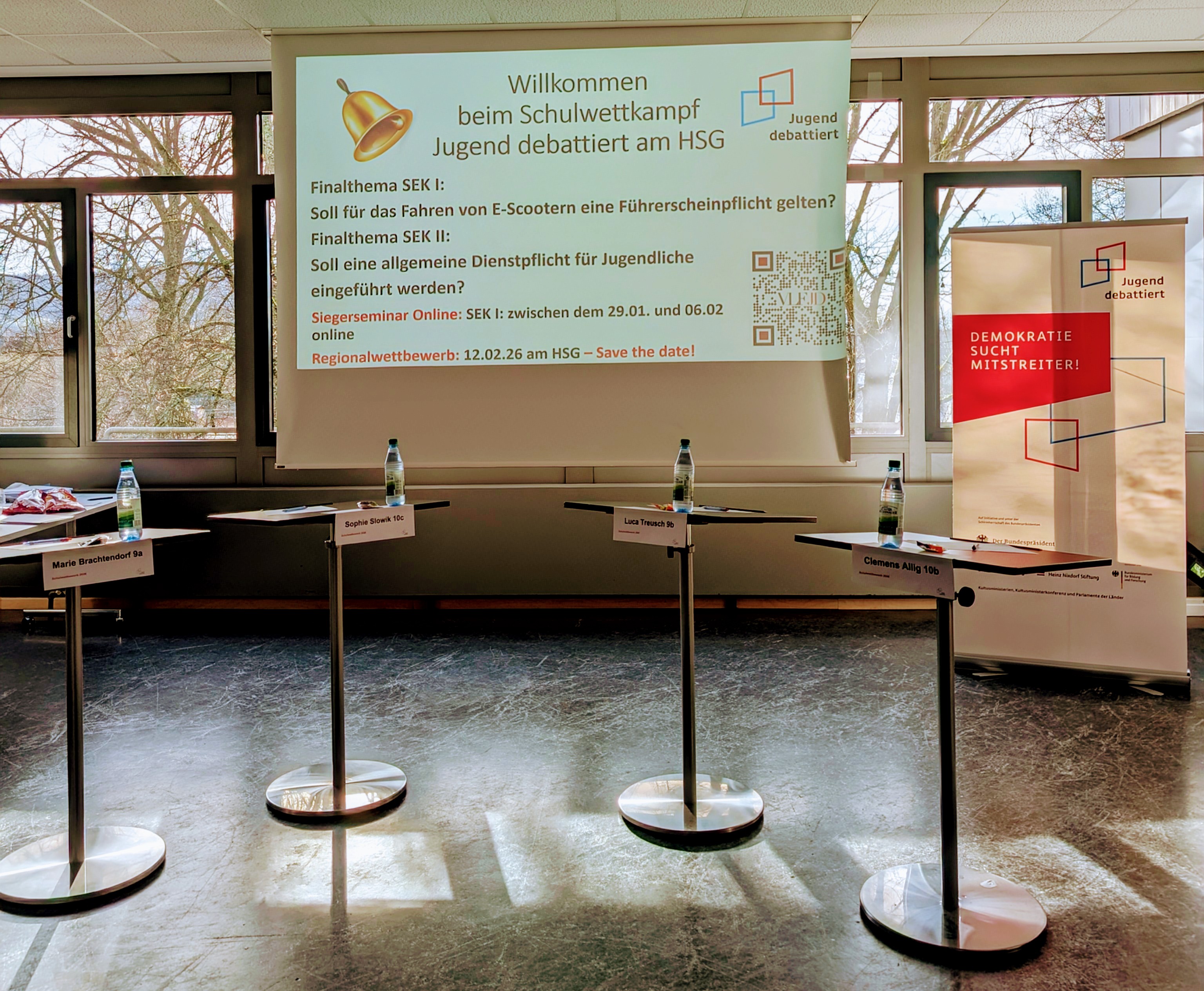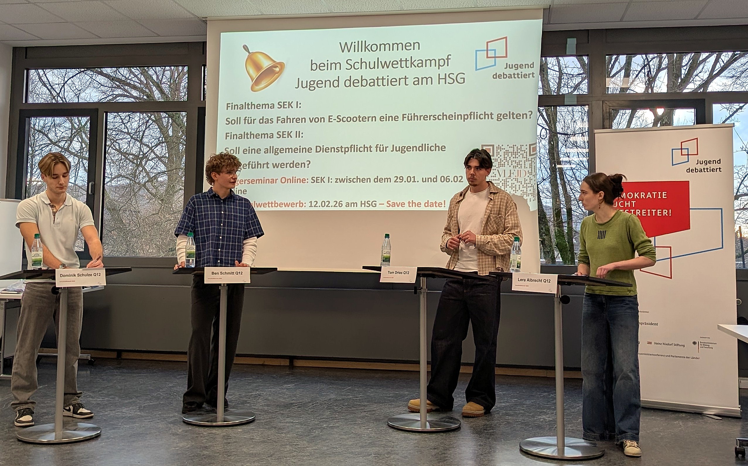Sollen Schüler ihre Schule selbst putzen? Soll es eine Führerscheinpflicht für E-Scooter geben? Oder auch: Soll eine allgemeine Dienstpflicht für Jugendliche eingeführt werden? – Spannende Fragen, zu denen jedem sogleich eine Meinung einfällt. Aber die Themen genau zu beleuchten und alle Pro- und Kontra-Argumente auszutauschen, das war die Aufgabe beim diesjährigen Schulwettkampf „Jugend debattiert“ 2026 am HSG.
